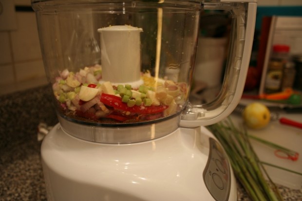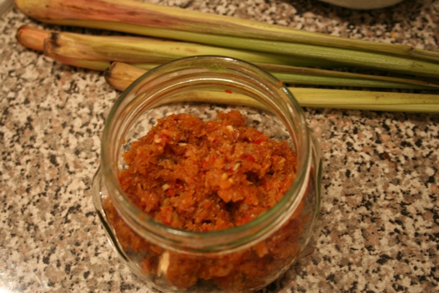 Setjið öll hráefnin í matvinnsluvél og myljið þangað til myndast hefur næstum hnökralaust mauk. Ég mæli með að merja fræin og belgina í mortéli áður en það fer í matvinnsluvélina.  Ef þú hefur ekki aðgang að matvinnsluvél þá geturðu búið til mauk með mortéli. Myljið niður hráefnin, nokkur í einu og blandið síðan vel saman. Maukið endist í sirka viku ef það er geymt inni í ísskáp.