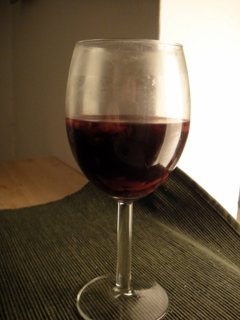 Fjarlægið kanilstöngina, kardimommurnar og negulnaglana. Bætið púðursykrinum við í litlum skömmtum, leyfið honum að leysast upp og smakkið áður en þið setjið næsta skammt. Þegar vínið er orðið nógu sætt getið þið borið það fram heitt ásamt sítrónuberki, rúsínum og möndlum.