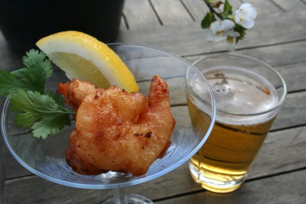 Það er best að kæla allt hráefni áður en það er eldað. Því kaldari sem rækjurnar og deigið er því stökkari verður rétturinn. Gott er að frysta bjórinn í hálftíma áður en hann er notaður og kæla hveitið í ísskáp í svipaðan tíma.
