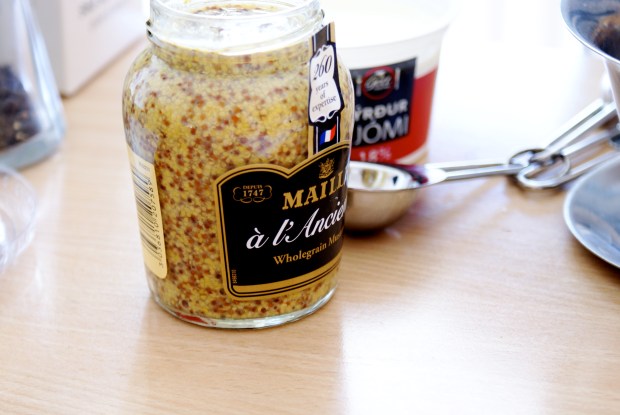 Steikarsamlokan var mjög einföld. Ég snöggsteikti kjötið og stakk því svo inn í ofn með frönskunum til að elda það aðeins meira. Ég bjó til sósu úr dijon sinnepi og sýrðum rjóma (ég fann uppskrift að sinnepsmajónesi en vildi ekki nota hana því það er mikil majónesfælni á þessum bæ), steikti sveppi og lauk og notaði klettasalat og súrar gúrkur til að setja á milli brauðsins. Ég keypti baguettebrauð en auðvitað er hægt að nota ciabatta, sveitabrauð eða í raun hvaða brauð sem til er við hendina (þó ég myndi seint mæla með þessu hefðbundna heimilisbrauði).