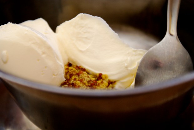 Hrærið öllu vel saman og smakkið til með salti og pipar.