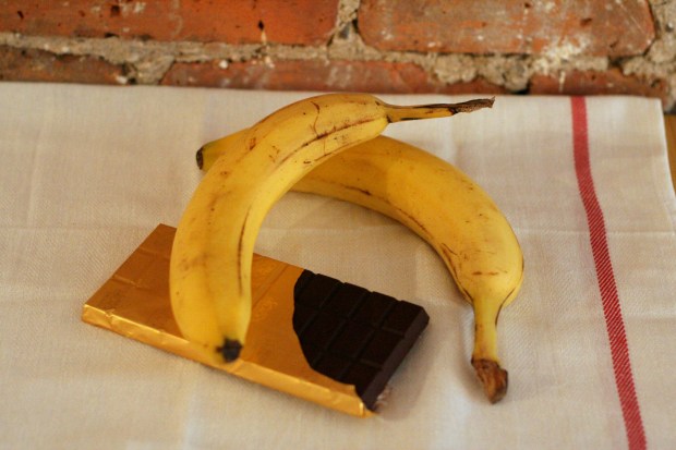 Brauðið er með ríku súkkulaðibragði og bananabragðið kemur sterkt fram. Elmar líkti bragðinu við grillaðan banana með súkkulaðisósu og ég held að það sé ansi nærri lagi. Það er þykkt, sætt, örlítið klístrað og syndsamlega gott (og þá meina ég syndsamlega). Það er bráðnauðsynlegt að hafa kaffibolla með sterku góðu kaffi í eða ískalt mjólkurglas við hendina. Farið svo með restina í skólann/vinnuna/til nágrannans til að halda sykur- og súkkulaðivímunni í lágmarki.