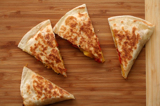 Okkur finnst best að borða quesadillurnar okkar með sterku salsa, fersku guacamole og (stundum) sýrðum rjóma. Það er líka gott að eiga þær í nesti því þær eru góðar kaldar og eru auðveldur fingramatur.