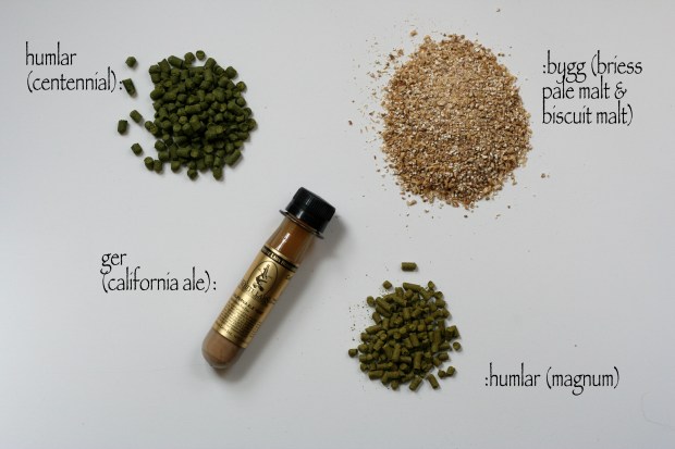 Við eigum ennþá eftir að fullkomna þetta nýja áhugamál okkar en mér datt í hug að sumir lesendur síðunnar hefðu gaman af því að fá smá innlit í ferlið og afraksturinn. Okkur finnst alveg ótrúlega gaman að búa til hluti frá grunni – ég er til dæmis svona hársbreidd frá því að finnast býflugnabúskapur besta hugmynd í heimi – og Elmari finnst einstaklega gaman að rækta bjórnördinn innra með sér. Reyndar komumst við að því stuttu eftir að bruggferlið hófst að ég væri með barni og því hefur bruggunin og bjórsmökkunin fallið í hans hlut. Það er því við hæfi að ég gefi honum orðið.