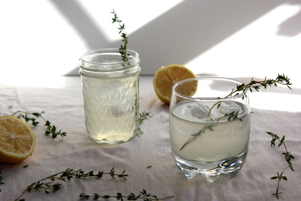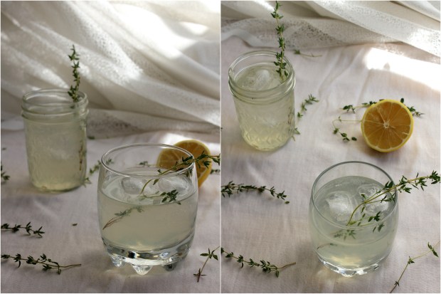 Við keyptum gin frá Islay í Skotlandi – The Botanist – um daginn sem ég er alveg kolfallin fyrir. Viskíframleiðandinn Bruichladdich býr til takmarkað upplag af því en meirihluti jurtanna sem fara í ginið eru tíndar í námunda við verksmiðjuna. Ég blandaði því saman við nýkreistan sítrónusafa og sletti smá tímíansírópi sem ég hafði búið til fyrr um daginn. Mér fannst uppskriftin fyrir sírópið þó heldur stór og hef minnkað hana hér að neðan. Útkoman er ferskur og eilítið kryddaður gindrykkur sem rennur ljúflega niður. Það má svo auðvitað sleppa gininu fyrir þá sem ekki drekka.