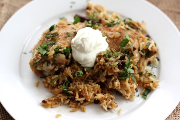 Ég ákvað því að taka fram trygga steypujárnpottinn minn (sem hefur aldrei brugðist mér) og elda réttinn inni í ofni frekar en á eldavélinni. Það var með betri hugmyndum sem ég hef fengið. Kjúklingurinn var alveg rétt eldaður, hrísgrjónin bragðmikil og með örlitlu biti og kryddin gáfu réttinum skemmtilegt og ríkt miðausturlenskt bragð. Þetta er frábær vetrarmatur – seðjandi, kryddaður og heitur. Ég mæli með því að bera hann fram með smá grískri jógurt með ólívuolíu og jafnvel einhverju góðu brauði.