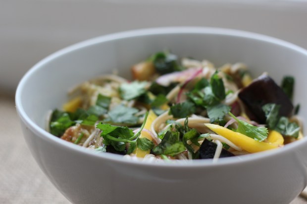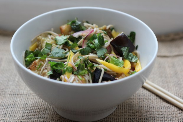 Soba með eggaldini og mangó