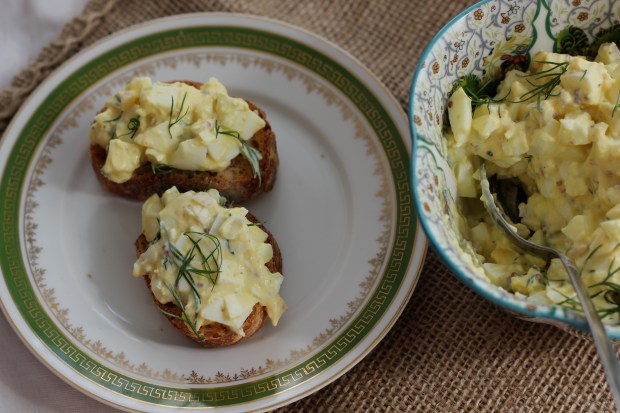 Það birti því yfir mér þegar ég sá uppskrift á Smitten Kitchen sem notar pæklað sellerí(!). Svo sniðugt. Svo einfalt. Svo má nýta pæklaða selleríið í meira en eggjasalat, túnfiskssalat og kartöflusalat. Það má til dæmis setja það á grillað brauð eða bara borða það beint upp úr krukkunni. Þetta eggjasalat er það besta sem ég hef fengið – dijonsinnepið gefur því hita, dillið ferskleika og selleríið smá bit og sýru. Eggjasalat í fullkomnu jafnvægi.