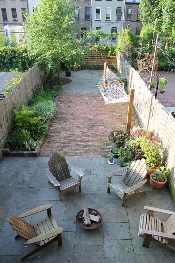 Eftir allt músaævintýrið í vetur og vor þá voru eigendur hússins svo góðir að veita okkur aðgang að bakgarðinum í smá tíma sem uppbót fyrir allt umstangið. Hann er, eins og sést á mynd, algjör draumur. Þórdís hefur skemmt sér vel við að liggja með okkur í hengirúminu og við njótum þess mikið að borða allar máltíðir á pallinum (þaðan sem myndin er tekin). Hitinn, garðurinn og sólin kalla á ferskan og kælandi sumardrykk. Það, og sú staðreynd að við þurfum að moka út úr vínskápnum áður en við höldum heim. Ég bjó því til þennan svalandi gindrykk með gúrku, myntu og límónu.