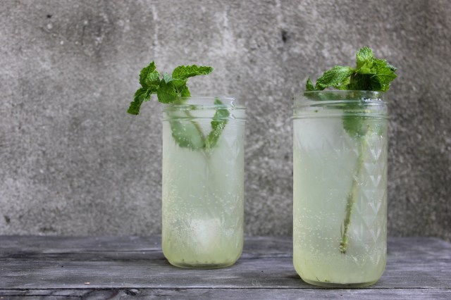 Skreytið með gúrkusneið eða myntu.
