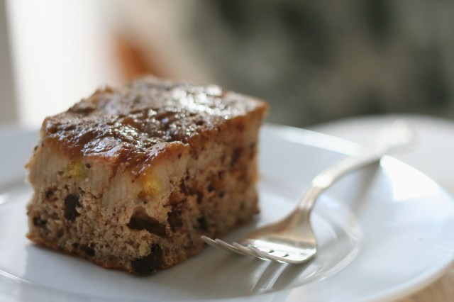 Við fengum gesti í mat í gærkvöldi og á meðan Elmar mallaði þetta rísottó þá bakaði ég köku úr banönum og súkkulaði. Bananar og súkkulaði eru klassísk blanda og hún er sérstaklega góð í þessari einföldu köku án þess að vera of sæt eða of væmin. Við bárum hana fram volga með vanilluís en ég hugsa að hún sé mjög góð með nýþeyttum rjóma. Það má hafa í huga við bakstur að það er gott að hræra deigið ekki of mikið annars gæti kakan orðið þyngri í sér og eilítið seigari en maður vill. Gott er blanda þurrefnunum og blautefnunum saman með ákveðnum strokum og hætta strax og hveitirákirnar hætta að sjást. Fylgist síðan vel með kökunni undir rest og takið hana út strax og hún bakast í gegn í miðjunni.