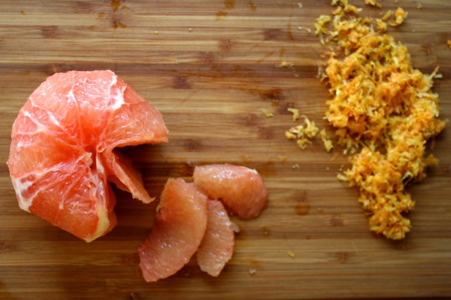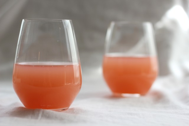Ef ég byggi heima í þessu langvarandi vetrarhreti, þá myndi ég bjóða góðu fólki í bröns um helgina. Ég myndi baka ólívuolíuköku, steikja ofnbakaðar kartöflur með spínati og beikoni, hleypa egg og búa til stóra könnu af þessum frábæra kokkteil. Uppskriftin er innblásin af hinni sívinsælu mímósu (appelsínusafi í kampavíni) en mér finnst þessi drykkur margfalt betri. Ferskur greipsafi blandaður saman við Campari og freyðivín.
