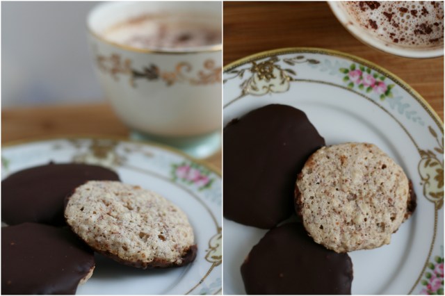 Fyrir mér eru sörur bestu jólasmákökurnar. Þær krefjast meiri fyrirhafnar en flestar aðrar smákökur en þær bragðast líka í samræmi við það. Ég studdist við uppskriftina í Matarást eftir Nönnu Rögnvaldsdóttur en breytti henni lítillega svo þær minntu mig meira á sörurnar sem mamma bjó til þegar ég var lítil. Möndlumarenskaka með espressósmjöri og dökkri súkkulaðihúð – ég veit ekki hver á heiðurinn af upprunalegu sörunni en mikið vildi ég geta keypt handa þeim bjór og gammel dansk.