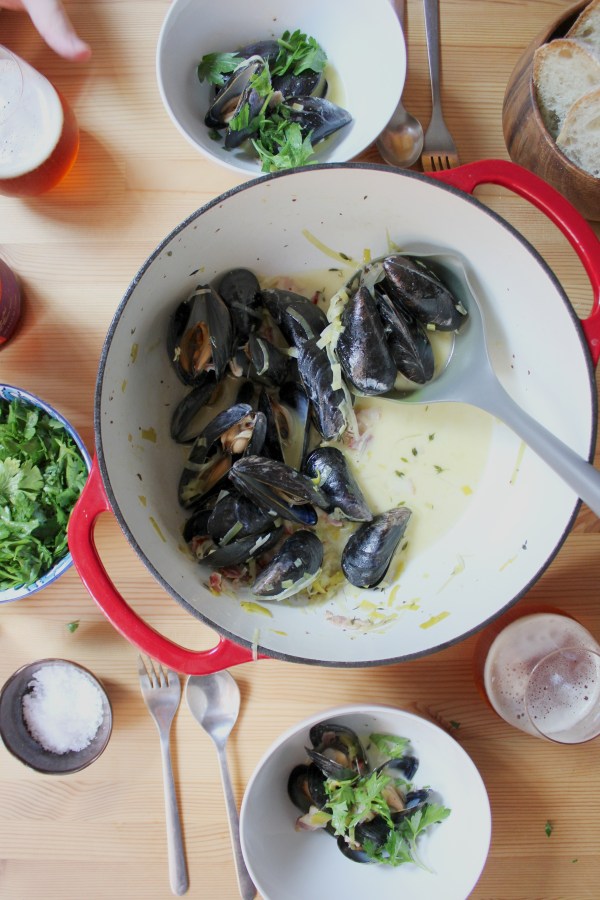 Okkur finnst mjög mikilvægt að velja drykki sem passa vel með matnum. Elmari finnst bjór passa best með öllum mat og nýtir þessa bók óspart til að fá góðar hugmyndir um samsetningar og þreytist ekki á að sannfæra fólk um að rauðvín sé vont með alvöru ostum. Með kræklingum er gott að drekka belgíska bjóra: belgískur hveitibjór (witbier) er klassískur. En ef þið komist í belgískan saison væri það allra best (t.d. Saison Dupont). Gueuze á líka að passa vel, sérstaklega ef kræklingarnir eru eldaðir upp úr honum í staðinn fyrir síderinn.