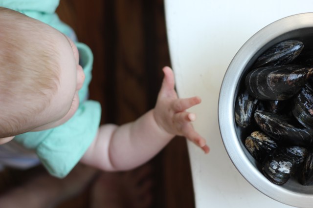 Strax og önnin var búin hjá Elmari ýtti hann mér út úr eldhúsinu og tók yfir kvöldmatargerðina. Við erum búin að borða fullt af fiski, steikarsalatið góða og uppáhaldsblómkálsréttinn okkar. Þessi kræklingaréttur sló samt öllu við. Þvílík veisla! Við vorum alls óviss um hvort við ætluðum að elda kræklinga þar sem við héldum að þeir væru of dýrir. Það kom okkur því skemmtilega á óvart að kílóapoki af kræklingum kostaði tæpa sex dali. Ég hugsa að kræklingar verði reglulega í matinn hjá okkur næstu vikur.