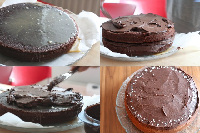 Ég verð reyndar að viðurkenna að sítrónumaukið olli mér töluverðum vandræðum og heilabrotum. Ég bjó það til daginn sem ég setti kökuna saman og bölvaði því milli samanbitinna tanna að hafa ekki haft vit á því að hafa gert það a.m.k. deginum áður. Það vildi bara alls ekki þykkna! Ég setti það inn í ísskáp, tók það út aftur, setti það yfir sjóðandi vatn, hrærði eins og ég ætti lífið að leysa, setti það inn í frysti, skellti matarlími í það en það náði samt ekki að þykkna nægilega mikið. Blandan sem varð eftir og situr í ísskápinum í dag er samt þykk og mun nærri því sem ég held að maukið eigi að vera.