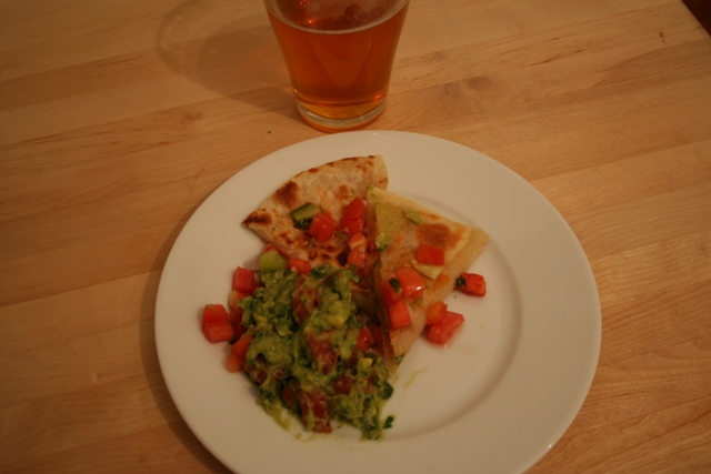 En þegar hlýtt er í veðri og mann langar eingöngu til að vera úti þá getur eldamennskan setið á hakanum. Við höfum ekki getað reitt okkur á loftkælinguna til þessa og því hef ég hikað við að standa yfir gaseldavélinni eða kveikja á ofninum. Lausn mín á þessum vanda er að búa til þessar einföldu kjúklingatacos. Ég kaupi tilbúinn kjúkling úti í búð og ríf hann niður. Sneiði síðan radísur og avókadó. Pækla rauðlauk og saxa ost. Svo bý ég til salsa fresca (ferska salsasósu). Úr verður ótrúlega einfaldur en ferskur og ljúffengur mexíkósur matur. Með þessu drekkur Elmar léttan bjór en ég blanda mér margarítuna mína.