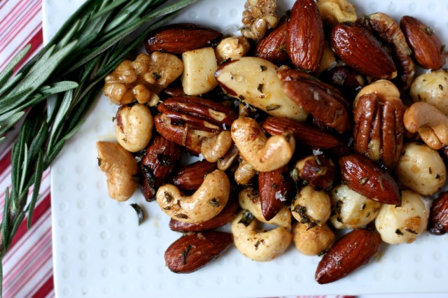Ég hafði ætlað mér að hafa ristaðar hnetur með chili og rósmaríni með ostunum en hætti svo við þegar mér fannst við vera búin að eyða nógu miklum fjármunum í jólamatinn. Í staðinn fann ég þessa uppskrift að krydduðum kíkertum (kjúklingabaunum) sem mér fannst mjög spennandi. Það er ekki óalgengt að fá svona á fínni öl- og vínstöðum borgarinnar á meðan maður bíður eftir drykkjunum. Kíkertunum er velt upp úr olíu og kryddum og þær eldaðar í ofni við háan hita þar til þær verða stökkar og fallega gylltar. Þetta er mjög gott snakk með ostum eða bara með víni og bjór á venjulegu þriðjudagskvöldi. Og þar sem dósin af kíkertum kostar bara 99 cent úti í búð hjá okkur þá býst ég við að freistast til að henda þessu reglulega í ofninn.