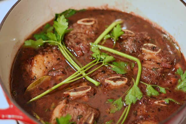 Hægelduð nautaskammrif í rauðvíni með piparrótarsósu