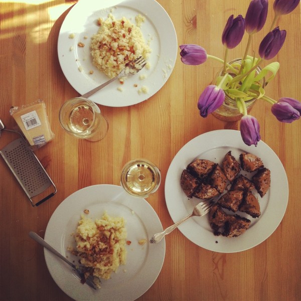 Það snjóaði líka hjá okkur fyrir helgi og ég held í vonina um að þetta sé síðasta snjókoma vetrarins.